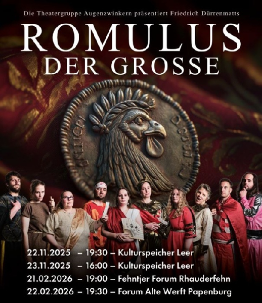 Jetzt bricht das römische Weltreich zusammen und Kaiser Romulus scheint das kaum zu interessieren. Das rasante Vordringen der germanischen Truppen, unter dem Feldherrn Odoaker, beabsichtigt Romulus keinesfalls sein Frühstück zu opfern. Wichtiger sind ihm seine Hühner, die er allesamt mit Namen großer römischer Kaiser oder Philosophen benannt hat. Der Zucht seines Federviehs widmet er seine ganze Leidenschaft.